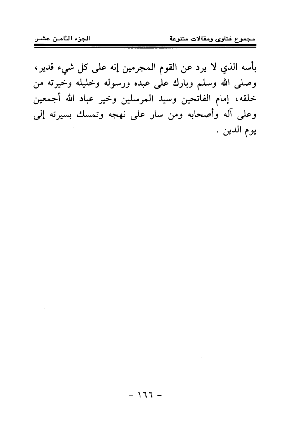 بأسه الذي لا يرد عن القوم المجرمين، إنه على كل شيء قدير، وصلى الله وسلم وبارك على عبده ورسوله وخليله وخيرته من خلقه، إمام الفاتحين وسيد المرسلين وخير عباد الله أجمعين، وعلى آله وأصحابه ومن سار على نهجه وتمسك بسيرته إلى يوم الدين.