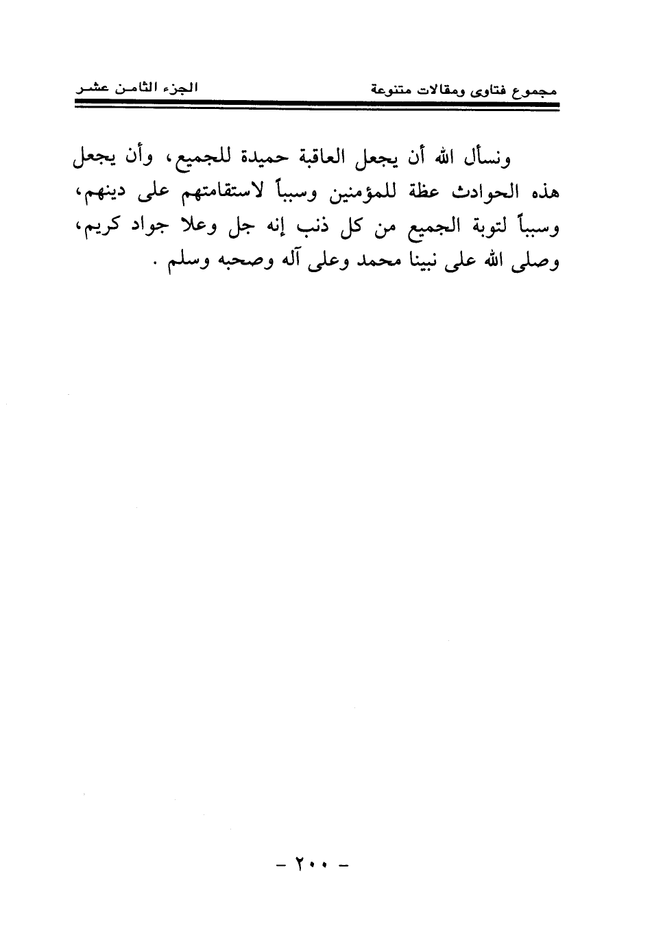 ونسأل الله أن يجعل العاقبة حميدة للجميع، وأن يجعل هذه الحوادث عظة للمؤمنين وسببا لاستقامتهم على دينهم، وسببا لتوبة الجميع من كل ذنب إنه جل وعلا جواد كريم، وصلى الله وسلم على نبينا محمد وعلى آله وصحبه وسلم.