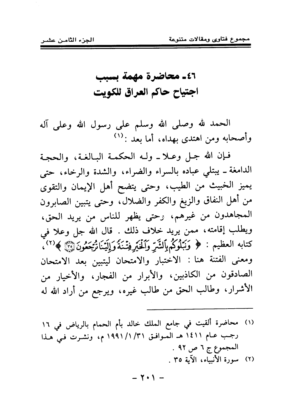 محاضرة مهمة بسبب اجتياح حاكم العراق للكويت