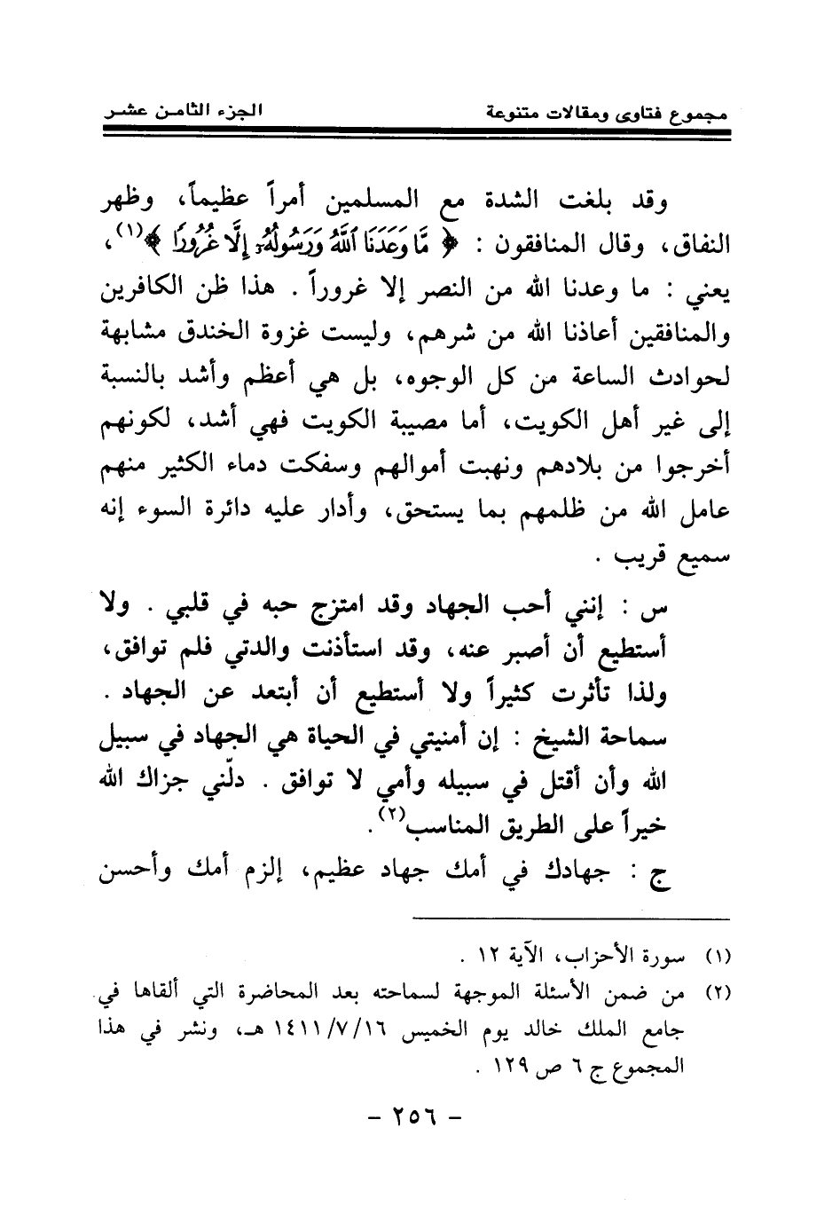 هذا ظن الكافرين والمنافقين أعاذنا الله من شرهم، وليست غزوة الخندق مشابهة لحوادث الساعة من كل الوجوه، بل هي أعظم وأشد بالنسبة إلى غير أهل الكويت، أما مصيبة الكويت فهي أشد؛ لكونهم أخرجوا من بلادهم ونهبت أموالهم وسفكت دماء الكثير منهم، عامل الله من ظلمهم بما يستحق، وأدار عليه دائرة السوء إنه سميع قريب.