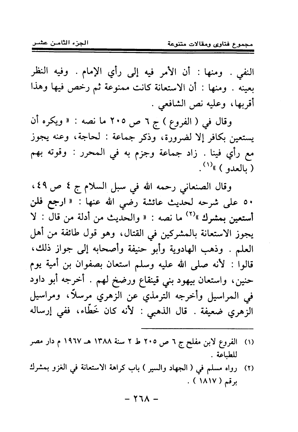(¬1) الفروع لابن مفلح ج6 ص 205 ط 2 سنة 1388 هـ 1967 م دار مصر للطباعة.