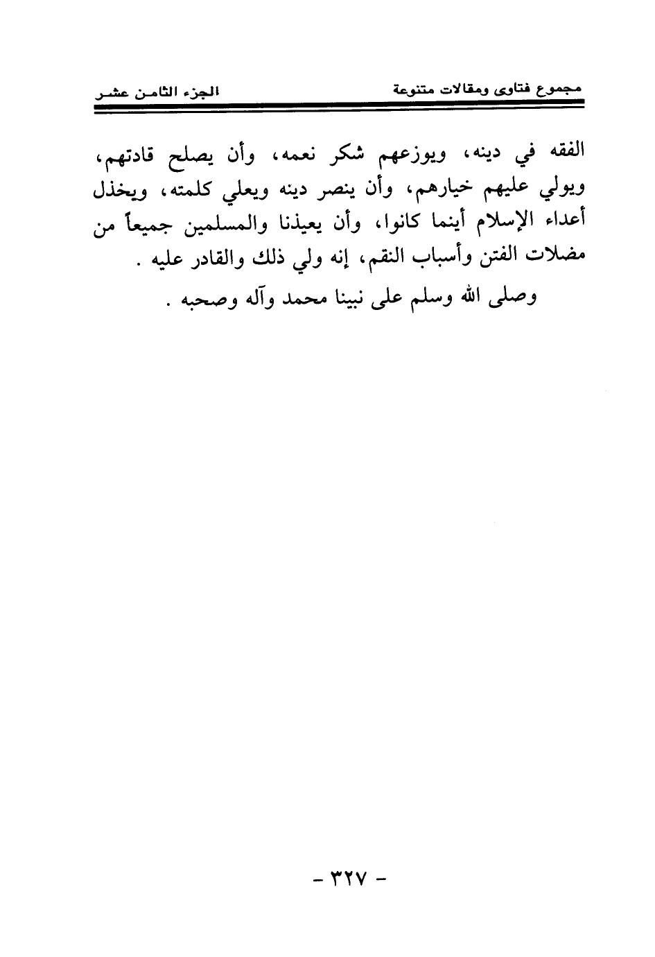 الفقه في دينه، ويوزعهم شكر نعمه، وأن يصلح قادتهم، ويولي عليهم خيارهم، وأن ينصر دينه ويعلي كلمته، ويخذل أعداء الإسلام أينما كانوا، وأن يعيذنا والمسلمين جميعا من مضلات الفتن وأسباب النقم، إنه ولي ذلك والقادر عليه.