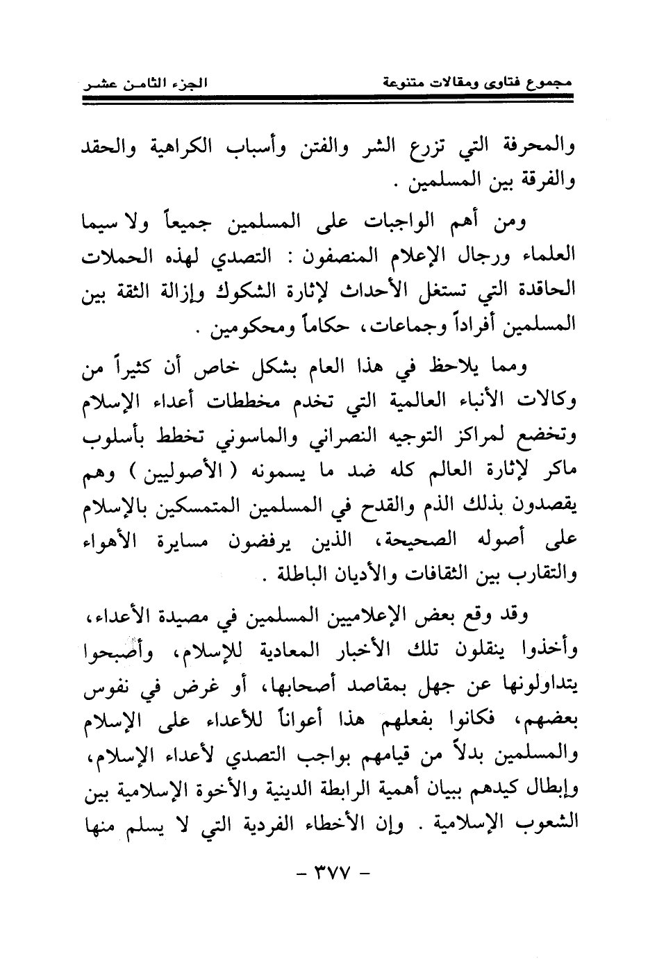 ومما يلاحظ في هذا العام بشكل خاص أن كثيرا من وكالات الأنباء العالمية التي تخدم مخططات أعداء الإسلام وتخضع لمراكز التوجيه النصراني والماسوني تخطط بأسلوب ماكر لإثارة العالم كله ضد ما يسمونه (الأصوليين) وهم يقصدون بذلك الذم والقدح في المسلمين المتمسكين بالإسلام على أصوله الصحيحة، الذين يرفضون مسايرة الأهواء والتقارب بين الثقافات والأديان الباطلة.
