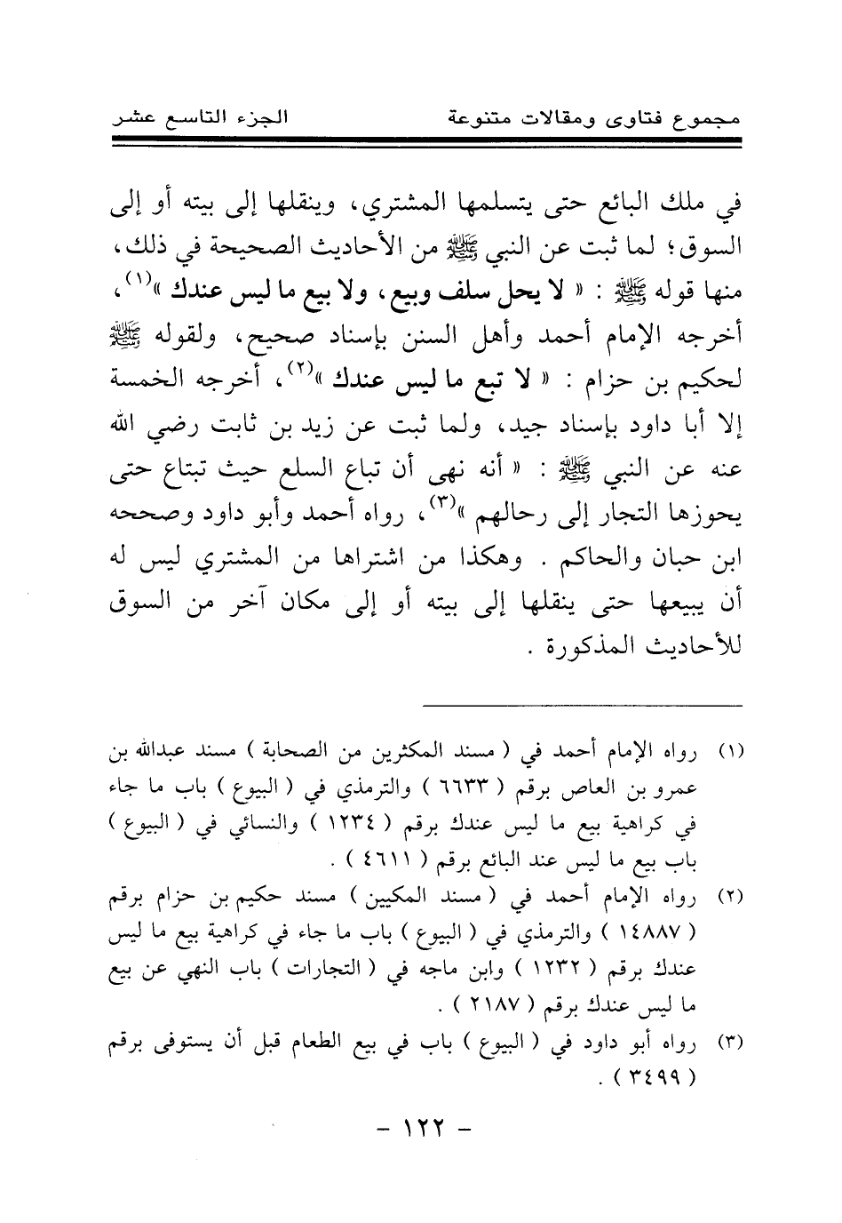 (¬1) رواه الإمام أحمد في (مسند المكثرين من الصحابة) مسند عبد الله بن عمرو بن العاص برقم (6633) والترمذي في (البيوع) باب ما جاء في كراهية بيع ما ليس عندك برقم (1234) والنسائي في (البيوع) باب بيع ما ليس عند البائع برقم (4611) .