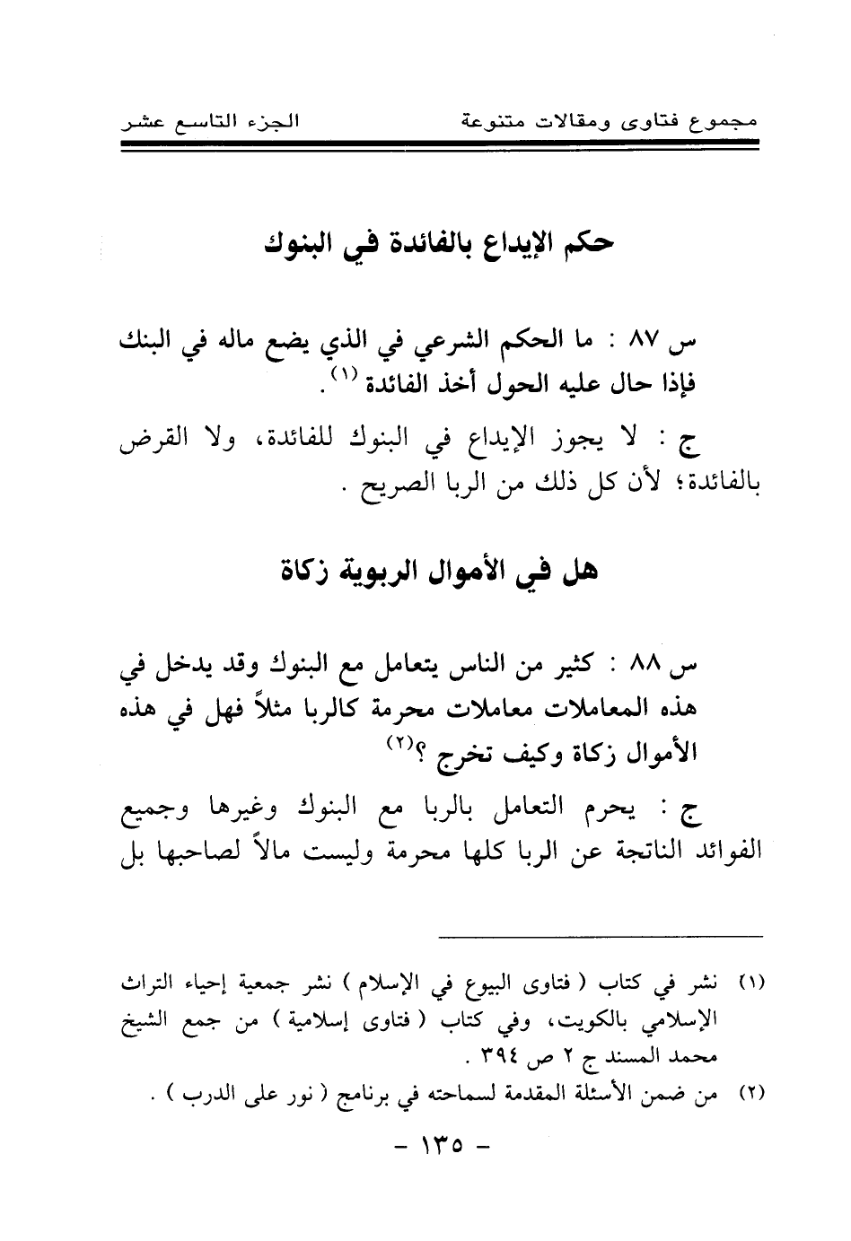 س 88: كثير من الناس يتعامل مع البنوك وقد يدخل في هذه المعاملات معاملات محرمة كالربا فهل في هذه الأموال زكاة وكيف تخرج؟ (¬1)