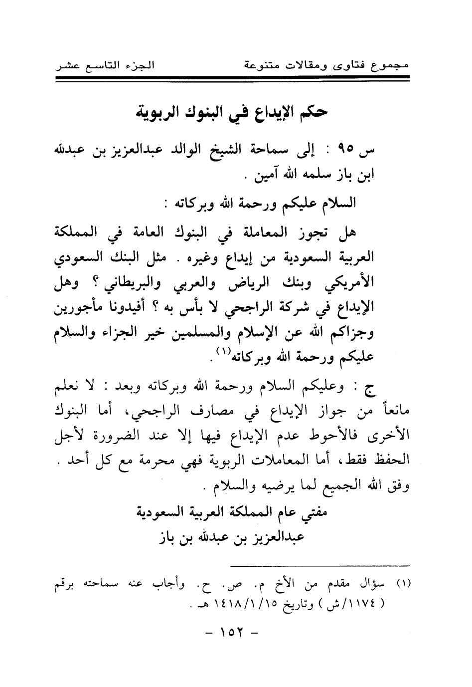 (¬1) سؤال مقدم من الأخ م. ص. ح. وأجاب عنه سماحته برقم (1174\ ش) وتاريخ 15\1\1418هـ.