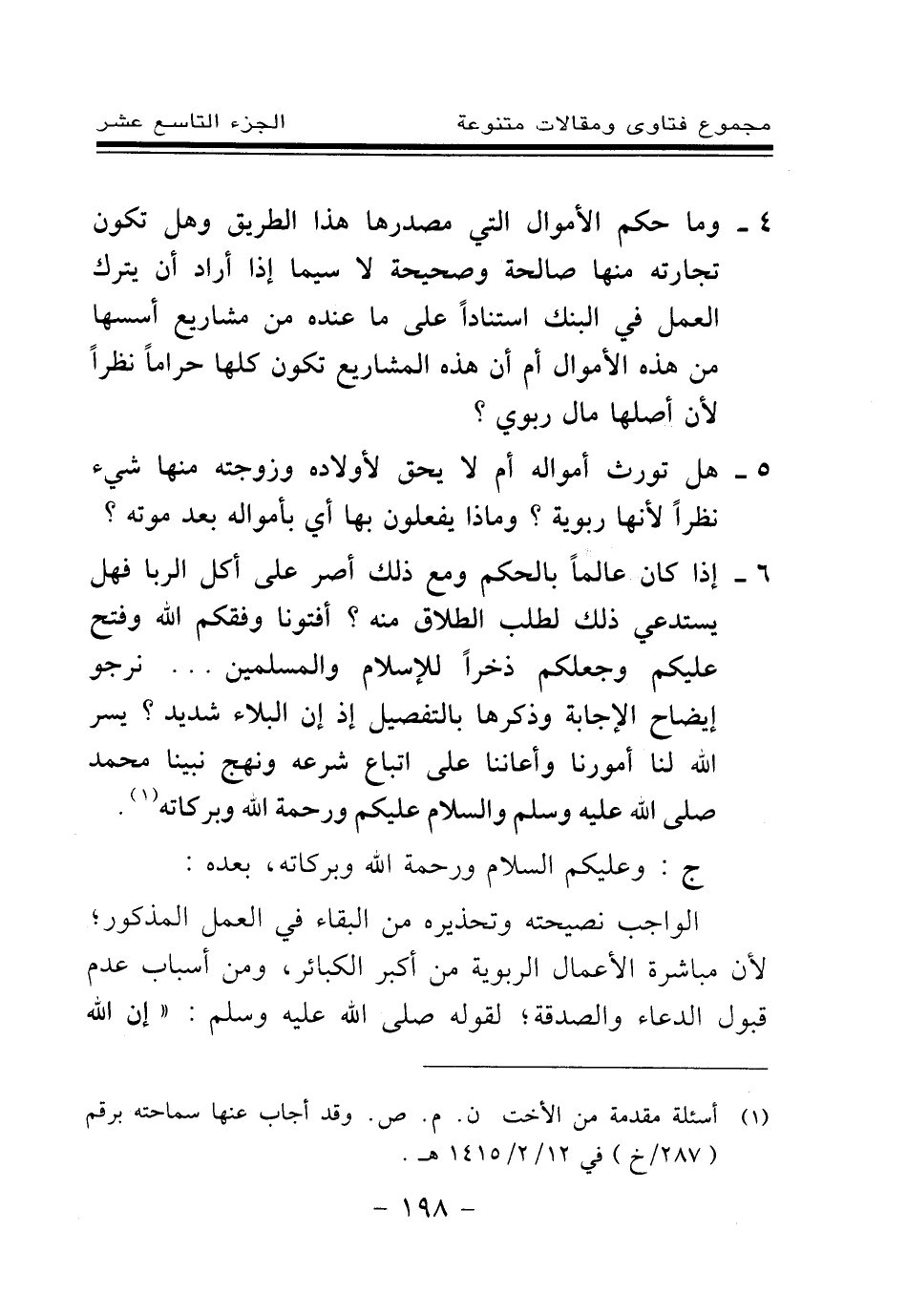 (¬1) أسئلة مقدمة من الأخت ن. م. ص. وقد أجاب عنها سماحته برقم (287 \خ) في 12 \ 2 \ 1415 هـ.