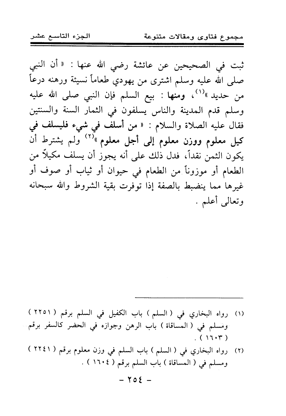 (¬2) رواه البخاري في (السلم) باب السلم في وزن معلوم برقم (2241) ومسلم في (المساقاة) باب السلم برقم (1604) .