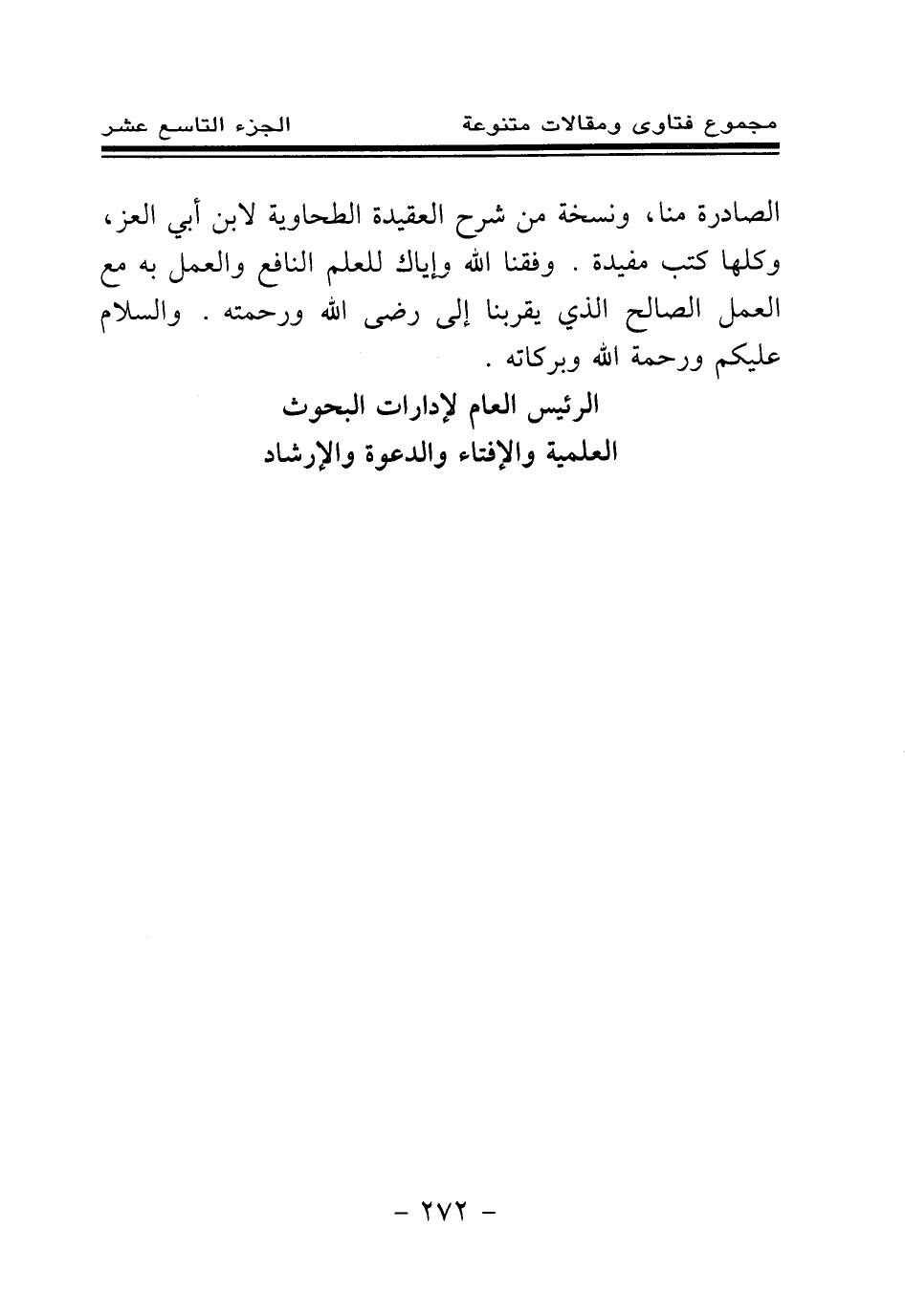 الصادرة منا، ونسخة من شرح العقيدة الطحاوية لابن أبي العز، وكلها كتب مفيدة. وفقنا الله وإياك للعلم النافع والعمل به مع العمل الصالح الذي يقربنا إلى رضى الله ورحمته. والسلام عليكم ورحمة الله وبركاته.