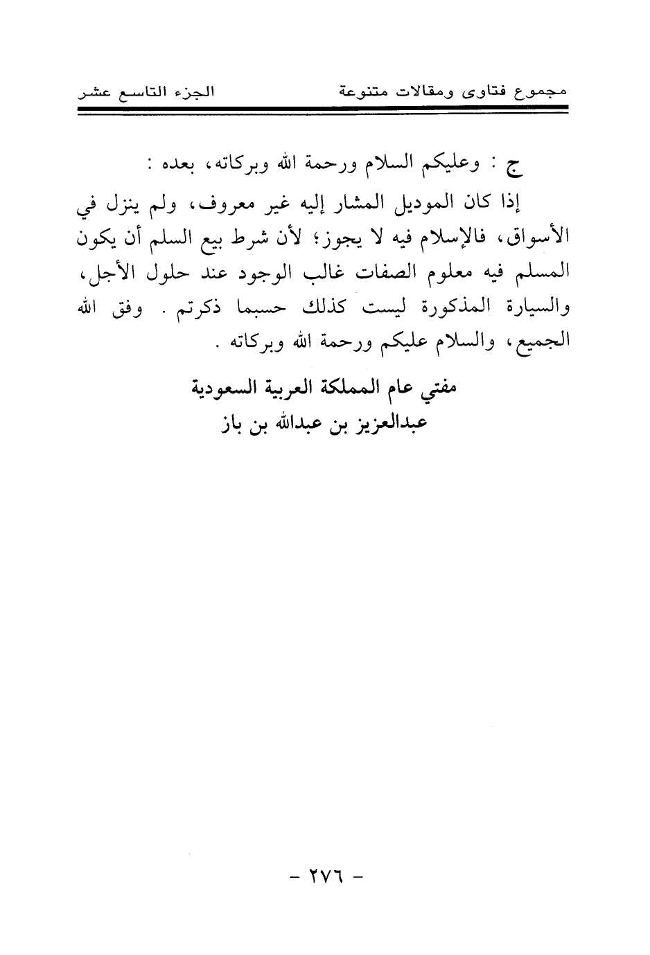 إذا كان الموديل المشار إليه غير معروف، ولم ينزل في الأسواق، فالإسلام فيه لا يجوز؛ لأن شرط بيع السلم أن يكون المسلم فيه معلوم الصفات غالب الوجود عند حلول الأجل، والسيارة المذكورة ليست كذلك حسبما ذكرتم. وفق الله الجميع، والسلام عليكم ورحمة الله وبركاته.