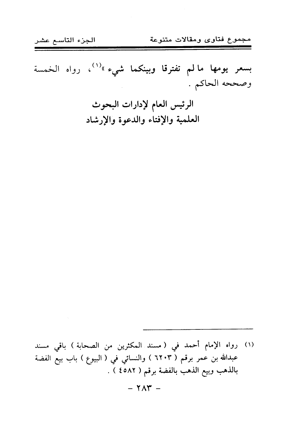 بسعر يومها ما لم تفترقا وبينكما شيء (¬1) » ، رواه الخمسة وصححه الحاكم.