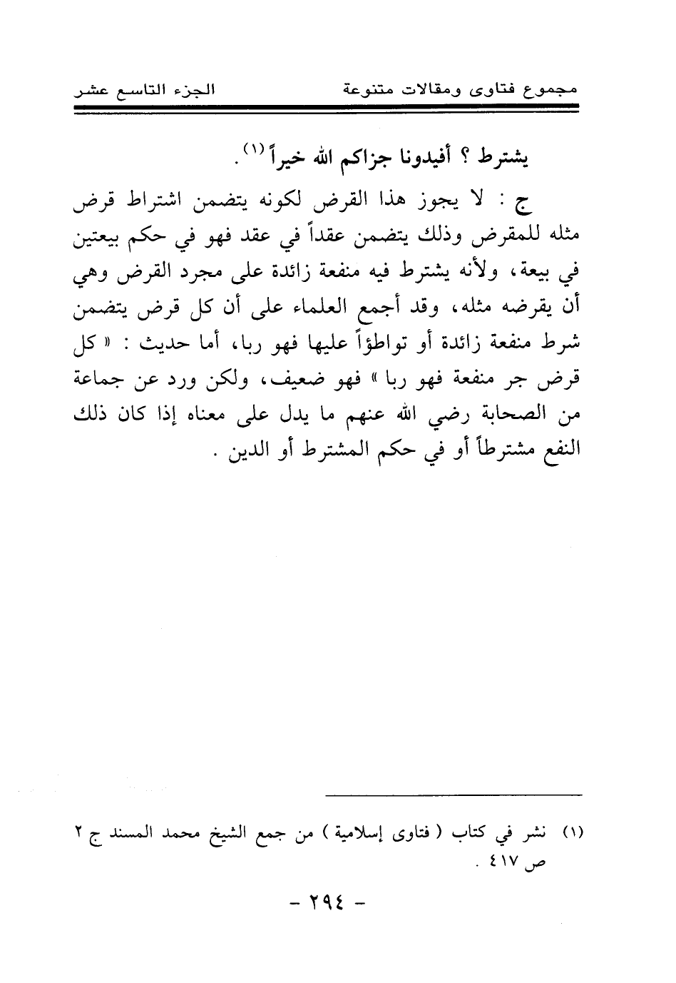 (¬1) نشر في كتاب (فتاوى إسلامية) من جمع الشيخ محمد المسند ج2 ص 417.