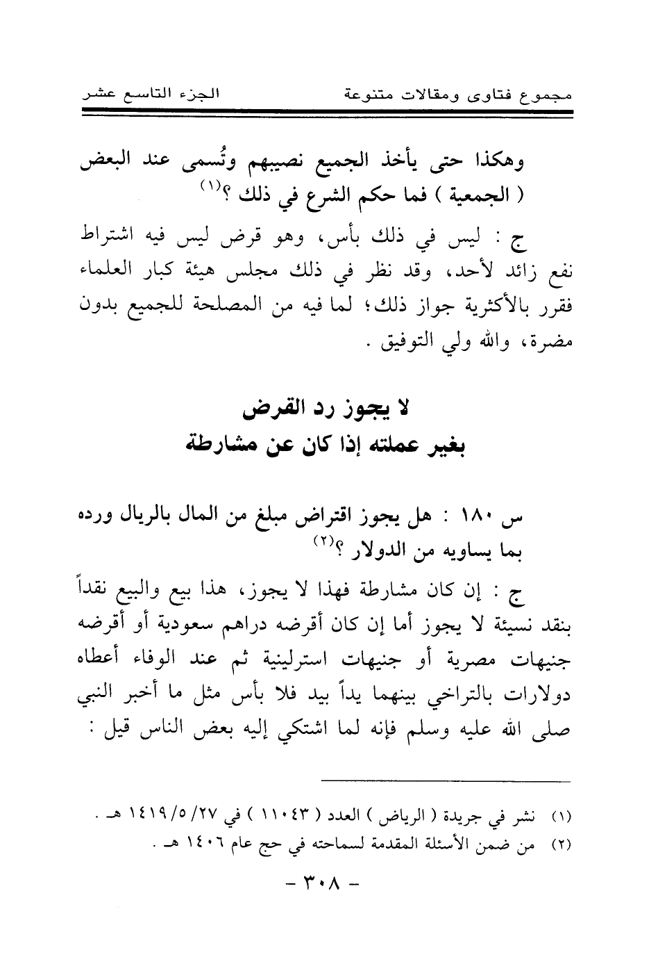 س 180: هل يجوز اقتراض مبلغ من المال بالريال ورده بما يساويه من الدولار؟ (¬1) .