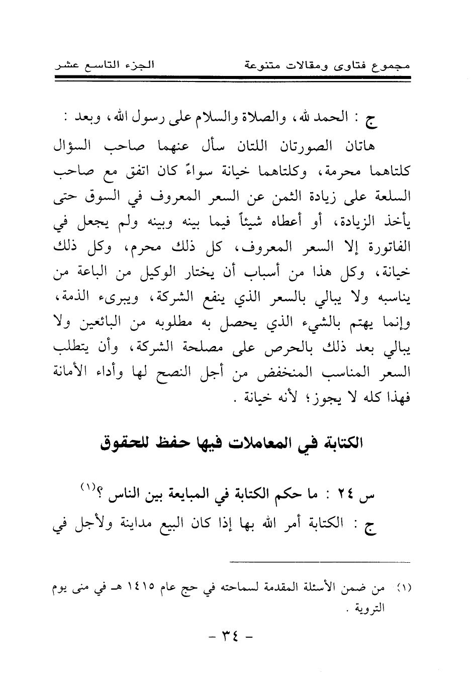 س 24: ما حكم الكتابة في المبايعة بين الناس؟ (¬1) .