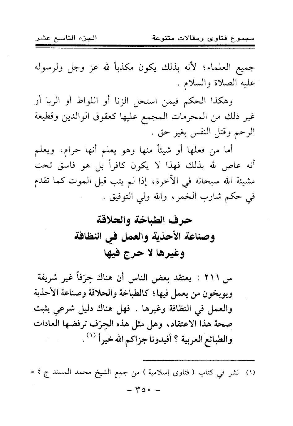 (¬1) نشر في كتاب (فتاوى إسلامية) من جمع الشيخ محمد المسند ج4 ص299.