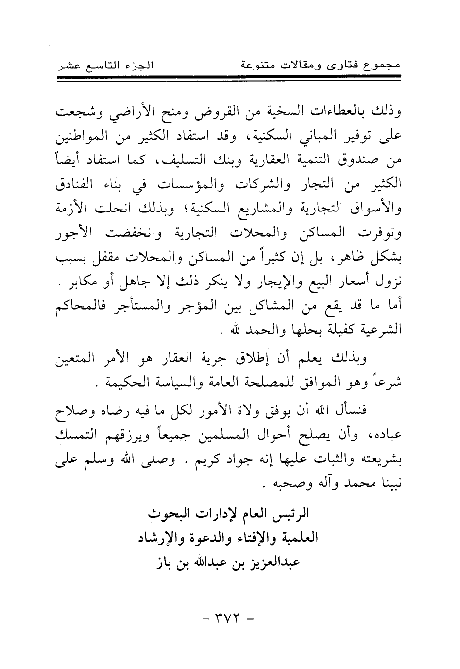 وبذلك يعلم أن إطلاق حرية العقار هو الأمر المتعين شرعا وهو الموافق للمصلحة العامة والسياسة الحكيمة.