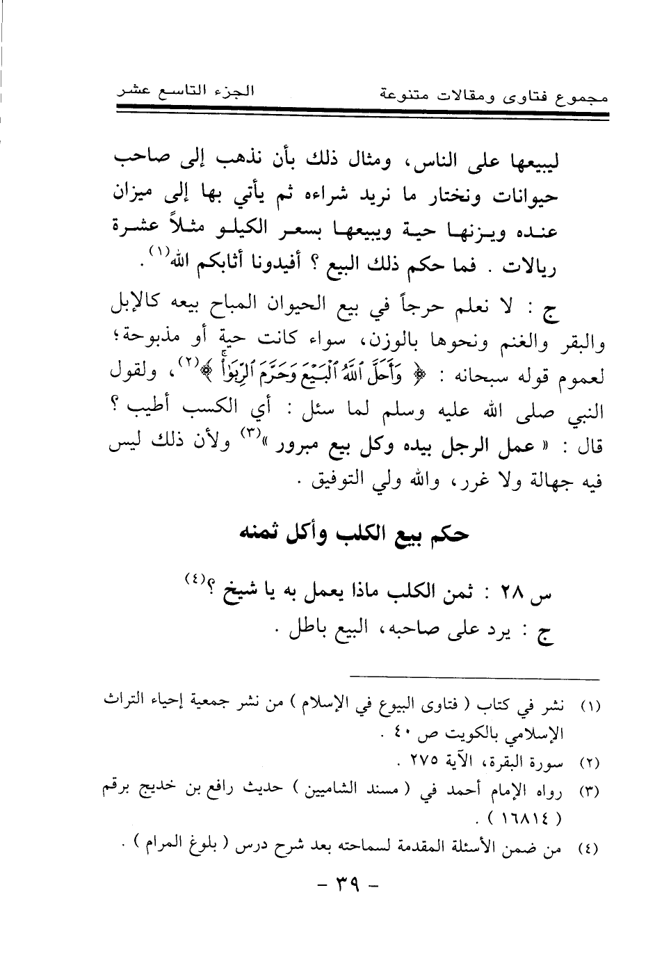 س 28: ثمن الكلب ماذا يعمل به يا شيخ؟ (¬1) .