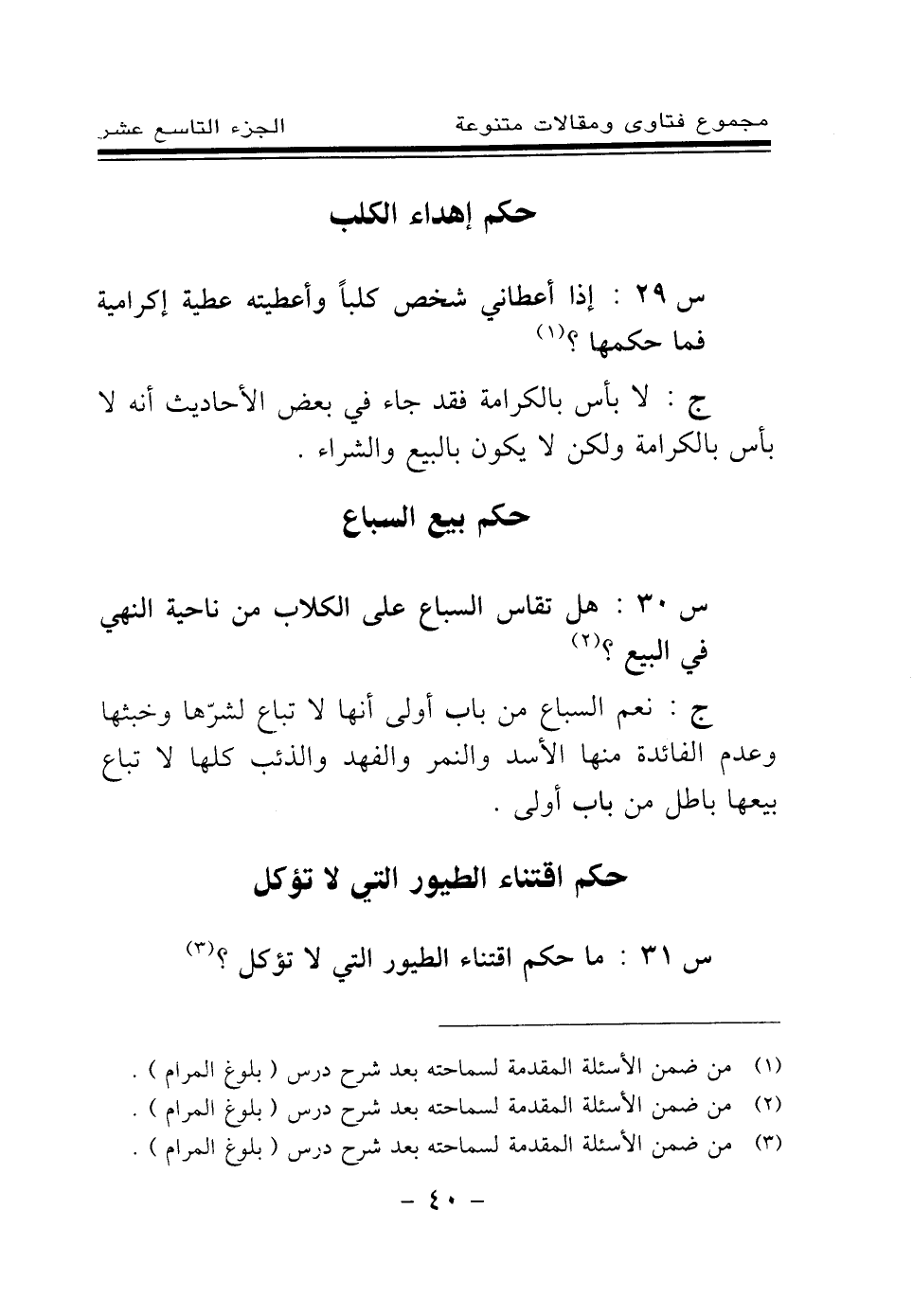 س 30: هل تقاس السباع على الكلاب من ناحية النهي في البيع؟ (¬1) .
