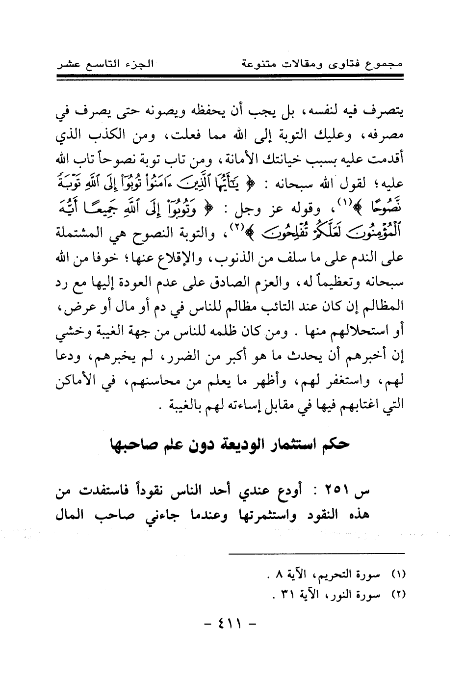 س 251: أودع عندي أحد الناس نقودا فاستفدت من هذه النقود واستثمرتها وعندما جاءني صاحب المال