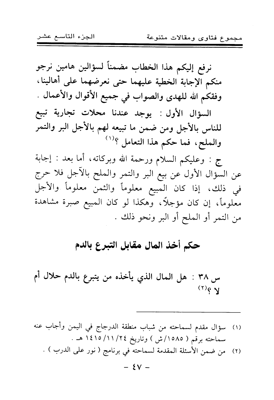 س 38: هل المال الذي يأخذه من يتبرع بالدم حلال أم لا؟ (¬1) .