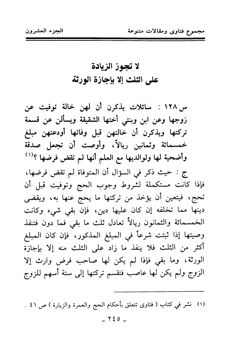(¬1) نشر في كتاب (فتاوى تتعلق بأحكام الحج والعمرة والزيارة) ص 41.