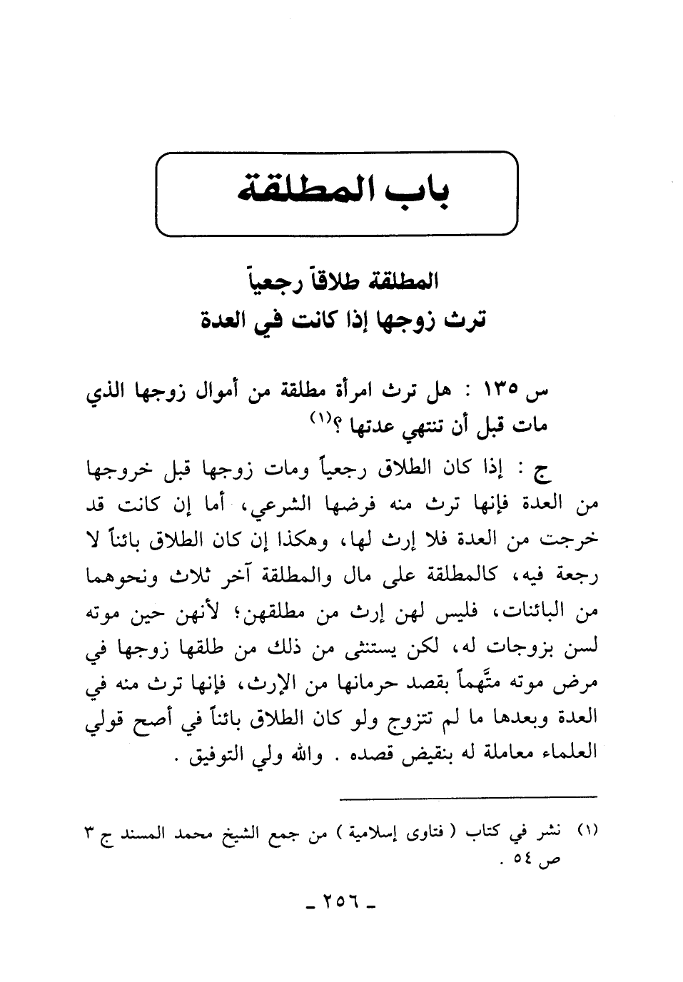 س 135: هل ترث امرأة مطلقة من أموال زوجها الذي مات قبل أن تنتهي عدتها؟ (¬1) .