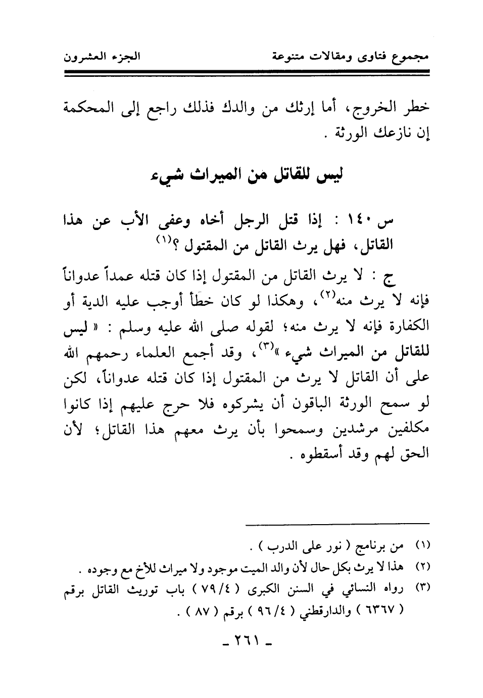 (¬3) رواه النسائي في السنن الكبرى (4 \ 79) باب توريث القاتل برقم (6367) والدارقطني (4 \ 96) برقم (87) .