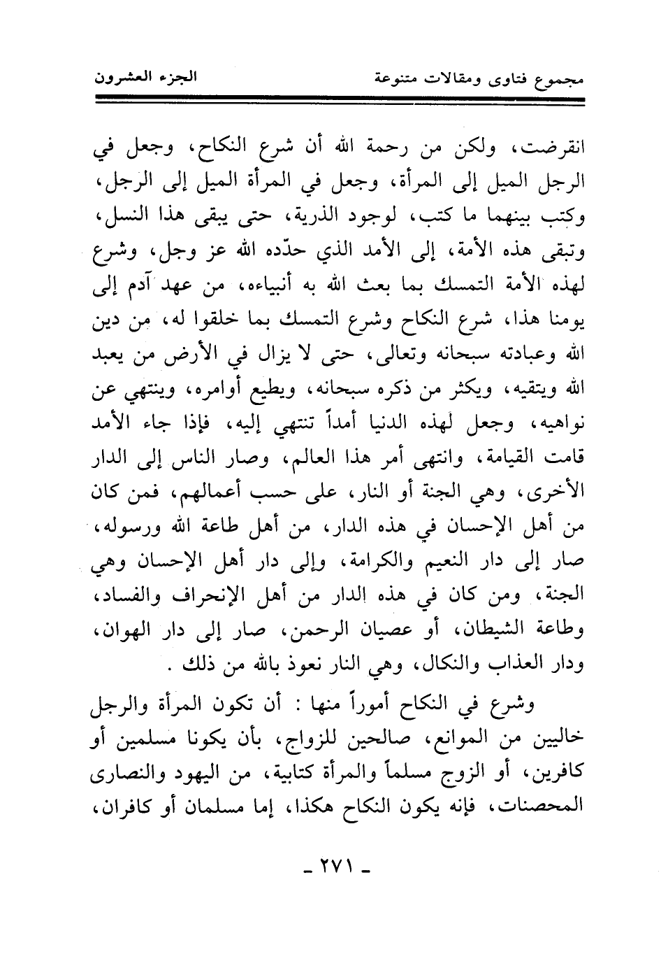 انقرضت، ولكن من رحمة الله أن شرع النكاح، وجعل في الرجل الميل إلى المرأة، وجعل في المرأة الميل إلى الرجل، وكتب بينهما ما كتب، لوجود الذرية، حتى يبقى هذا النسل، وتبقى هذه الأمة، إلى الأمد الذي حدده الله عز وجل، وشرع لهذه الأمة التمسك بما بعث الله به أنبياءه، من عهد آدم إلى يومنا هذا، شرع النكاح وشرع التمسك بما خلقوا له، من دين الله وعبادته سبحانه وتعالى، حتى لا يزال في الأرض من يعبد الله ويتقيه، ويكثر من ذكره سبحانه، ويطيع أوامره، وينتهي عن نواهيه، وجعل لهذه الدنيا أمدا تنتهي إليه، فإذا جاء الأمد قامت القيامة، وانتهى أمر هذا العالم، وصار الناس إلى الدار الأخرى، وهي الجنة أو النار، على حسب أعمالهم، فمن كان من أهل الإحسان في هذه الدار، من أهل طاعة الله ورسوله، صار إلى دار النعيم والكرامة، وإلى دار أهل الإحسان وهي الجنة، ومن كان في هذه الدار من أهل الانحراف والفساد، وطاعة الشيطان، أو عصيان الرحمن، صار إلى دار الهوان، ودار العذاب والنكال، وهي النار نعوذ بالله من ذلك.