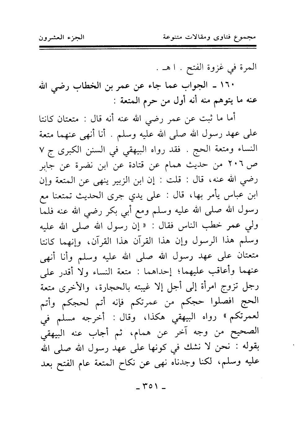 160 - الجواب عما جاء عن عمر بن الخطاب رضي الله عنه ما يتوهم منه أنه أول من حرم المتعة: