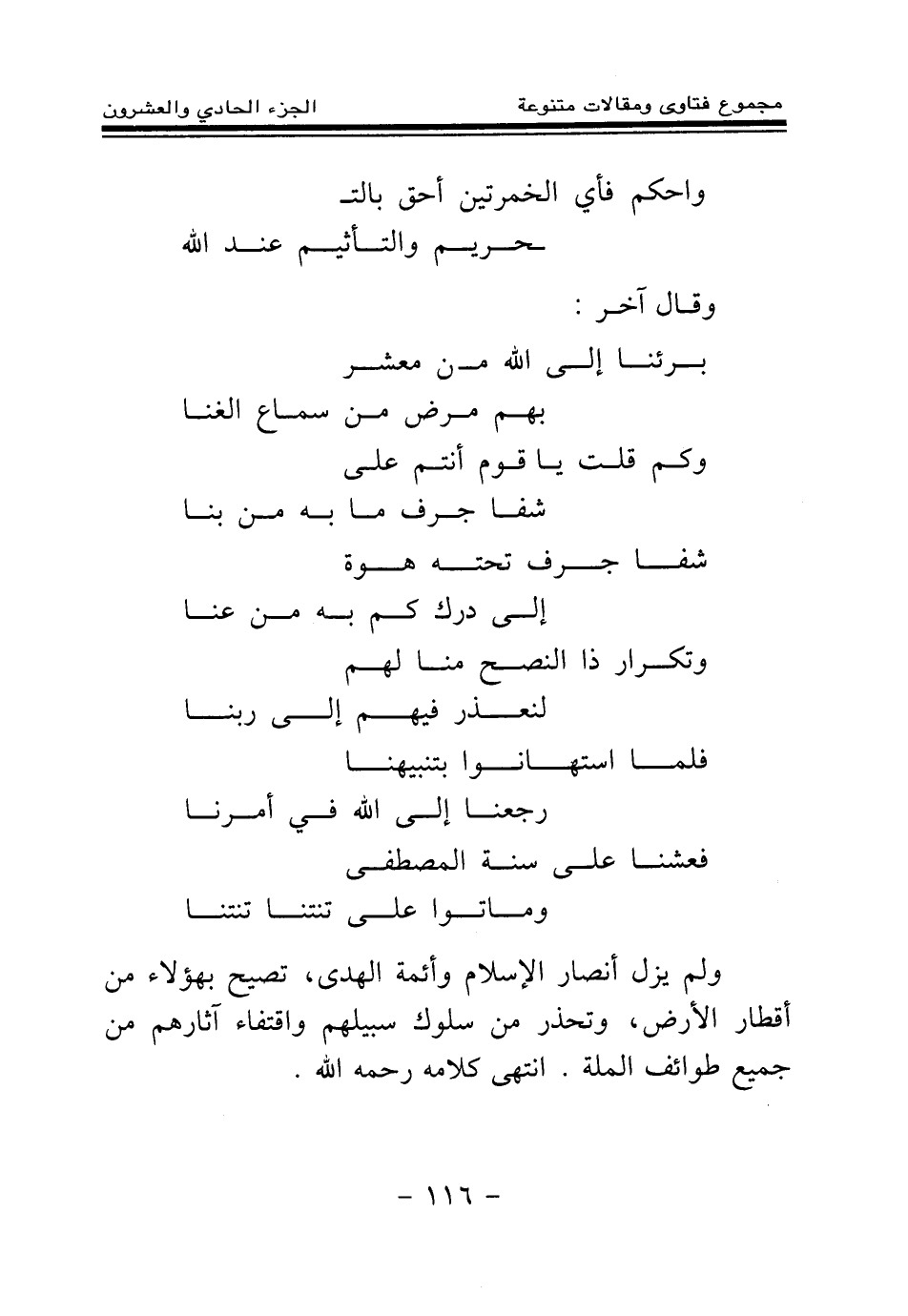 برئنا إلى الله من معشر ... بهم مرض من سماع الغنا