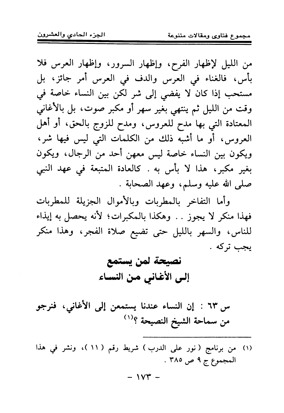 (¬1) من برنامج نور على الدرب، شريط رقم (11) . ونشر في هذا المجموع ج9 ص385.
