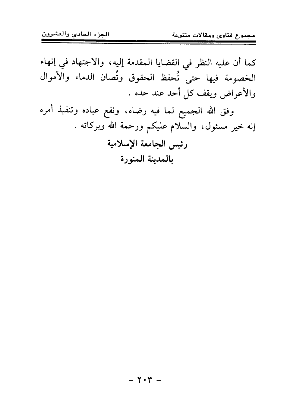 كما أن عليه النظر في القضايا المقدمة إليه، والاجتهاد في إنهاء الخصومة فيها، حتى تحفظ الحقوق وتصان الدماء والأموال والأعراض، ويقف كل أحد عند حده.