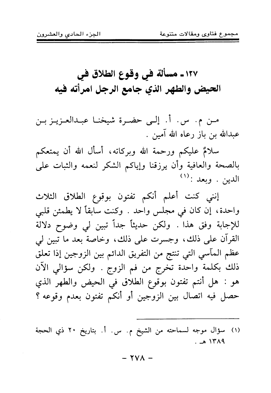 (¬1) سؤال موجه لسماحته من الشيخ م. س. أ. بتاريخ 20 ذي الحجة 1389هـ.