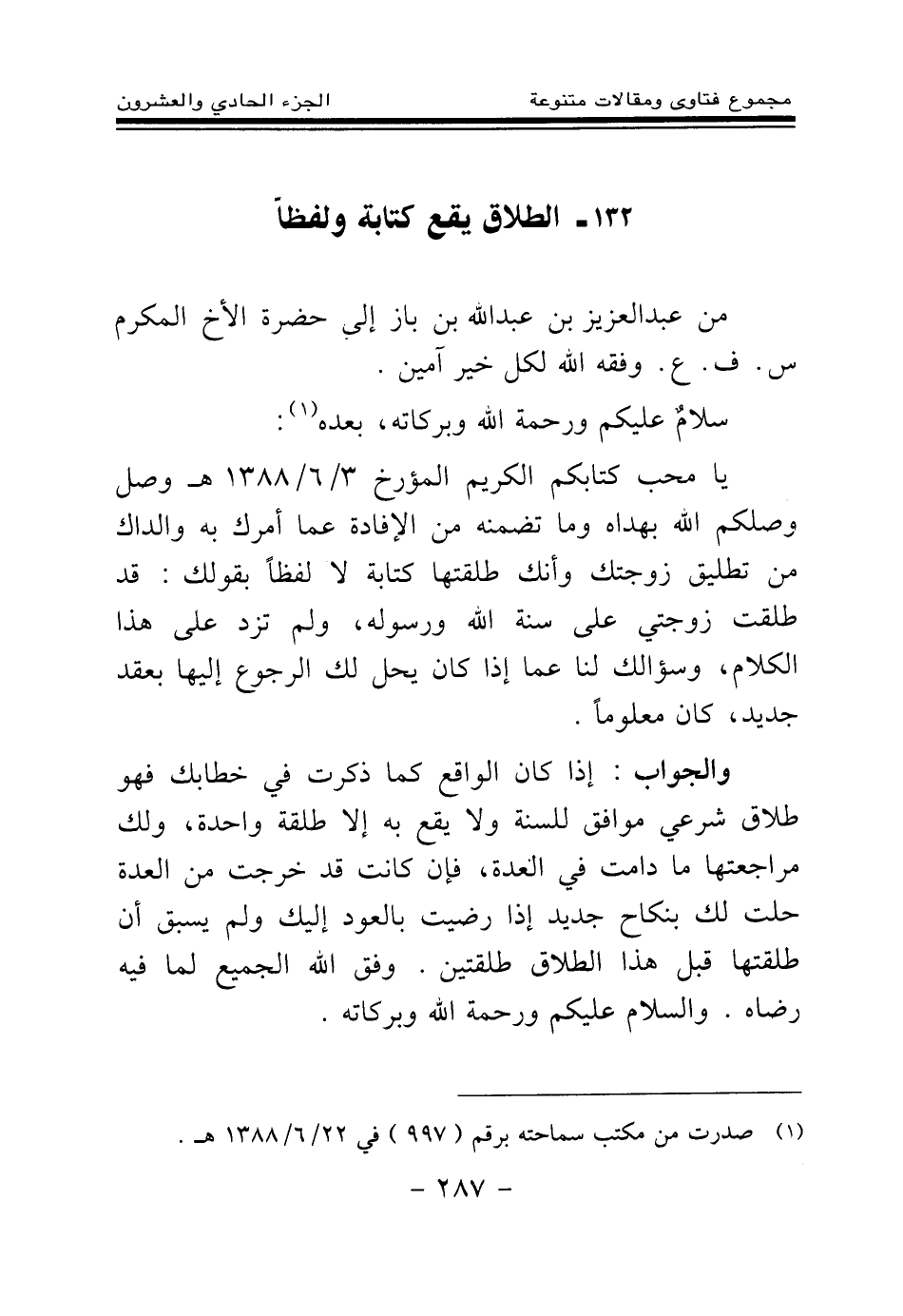 (¬1) صدرت من مكتب سماحته برقم (997) في 22\6\1388هـ.