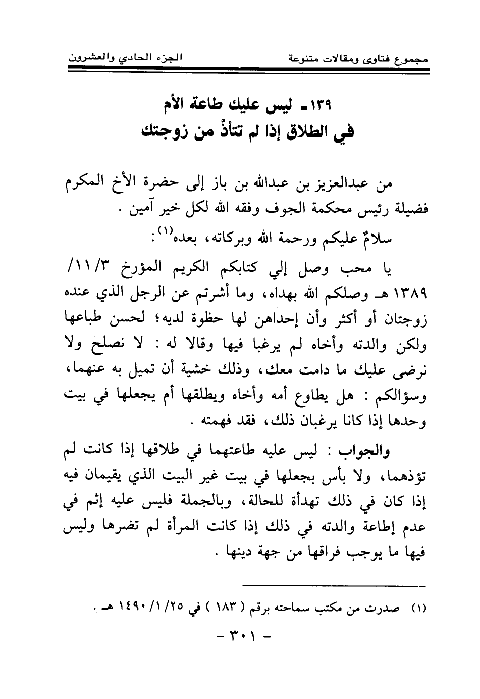 (¬1) صدرت من مكتب سماحته برقم (183) في 25\1\1490هـ.