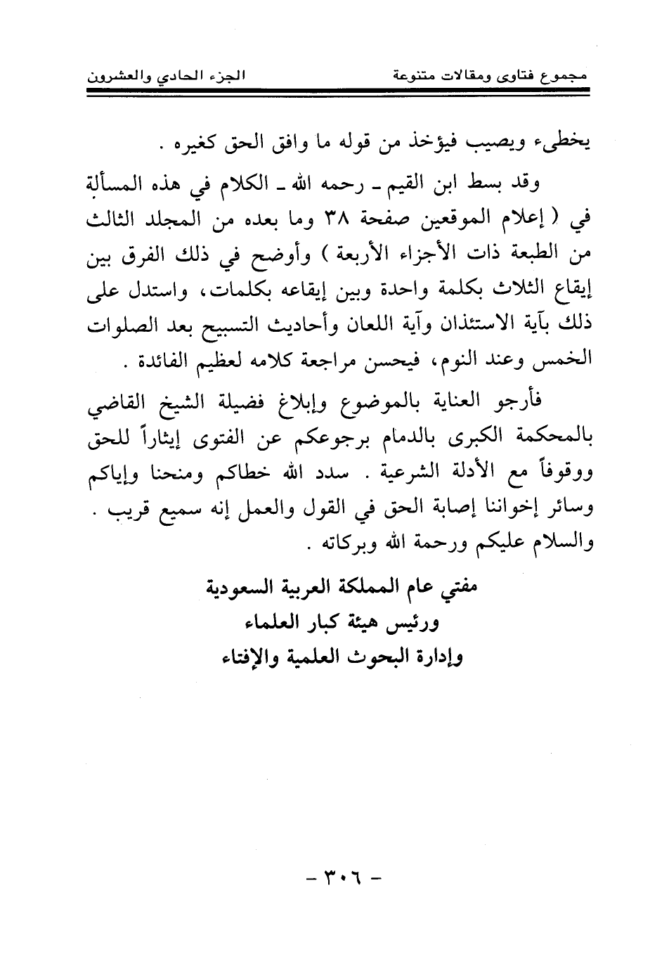 فأرجو العناية بالموضوع وإبلاغ فضيلة الشيخ القاضي بالمحكمة الكبرى بالدمام برجوعكم عن الفتوى إيثارا للحق ووقوفا مع الأدلة الشرعية. سدد الله خطاكم ومنحنا وإياكم وسائر إخواننا إصابة الحق في القول والعمل، إنه سميع قريب. والسلام عليكم ورحمة الله وبركاته.