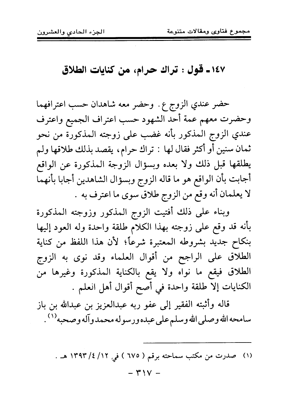 (¬1) صدرت من مكتب سماحته برقم (675) في 12\4\1393هـ.