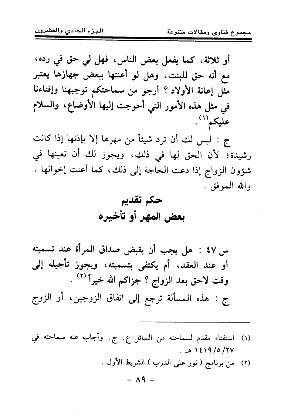 (¬1) استفتاء مقدم لسماحته من السائل ع. ج. وأجاب عنه سماحته في 27\ 5\ 1419 هـ.
