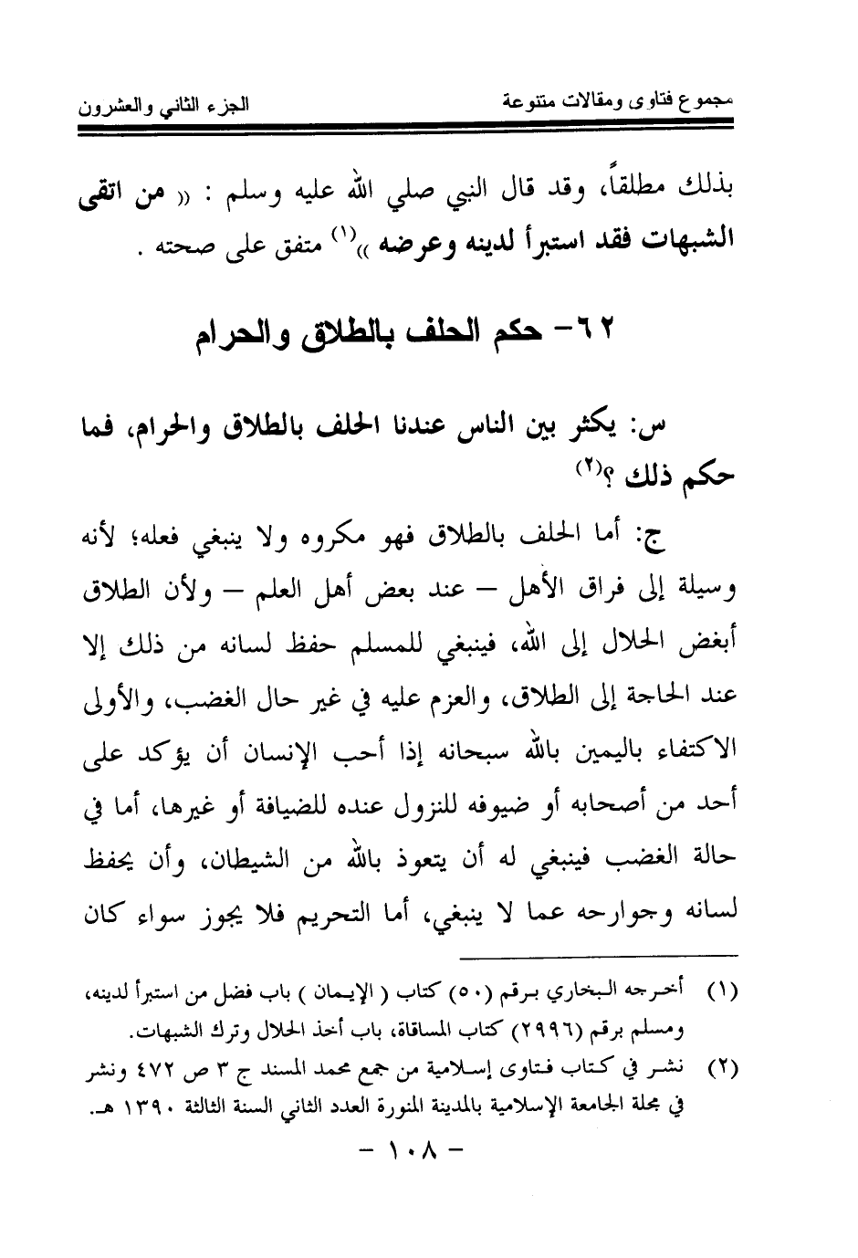 س: يكثر بين الناس عندنا الحلف بالطلاق والحرام، فما حكم ذلك؟ .