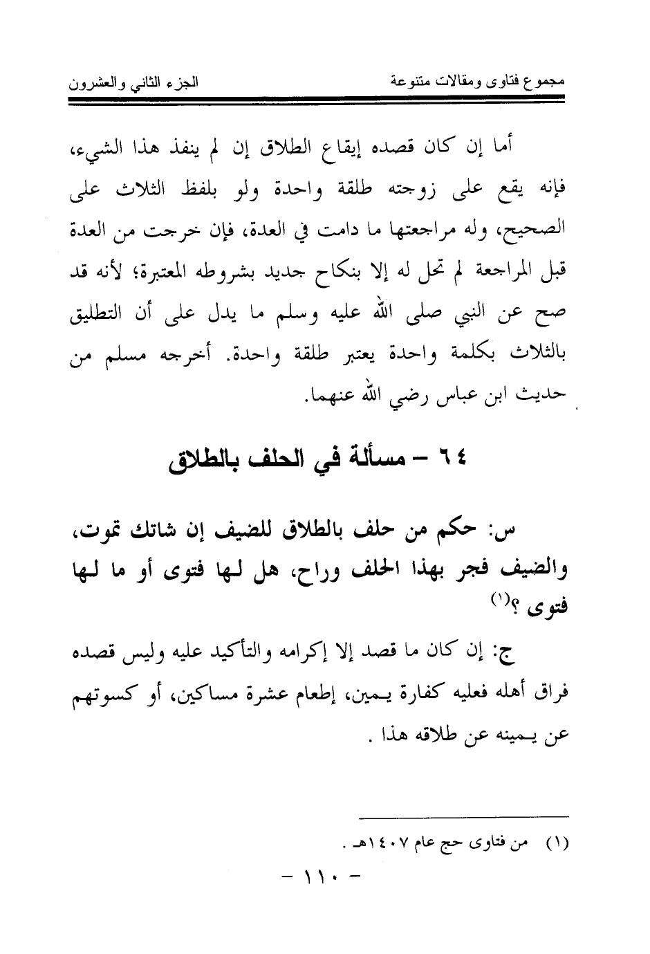 (¬1) من فتاوى حج عام 1407هـ.