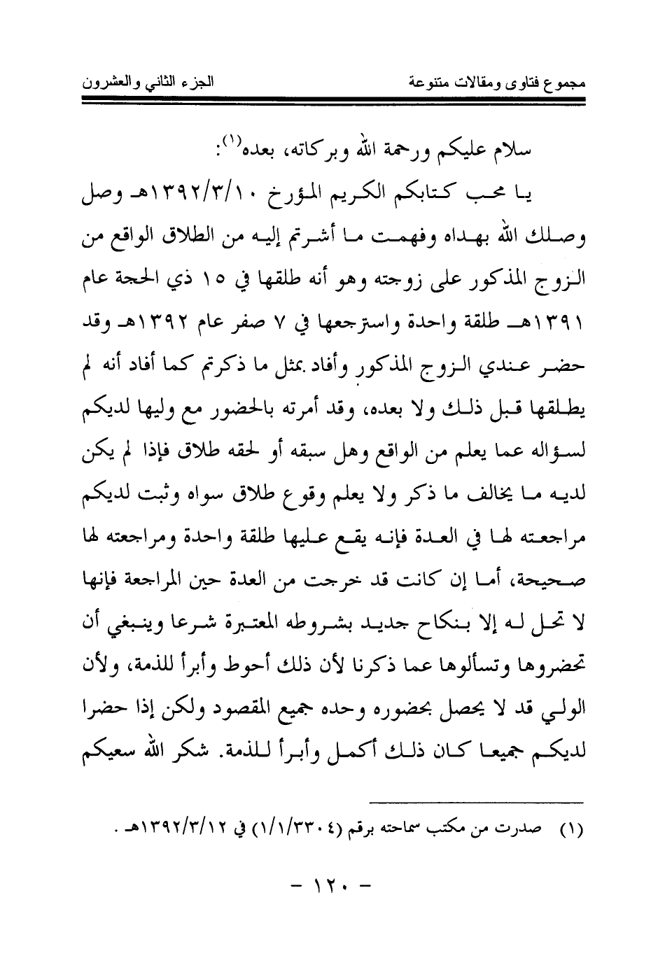 (¬1) صدرت من مكتب سماحته برقم (3304 \ 1 \ 1) في 12 \ 3 \ 1392هـ.