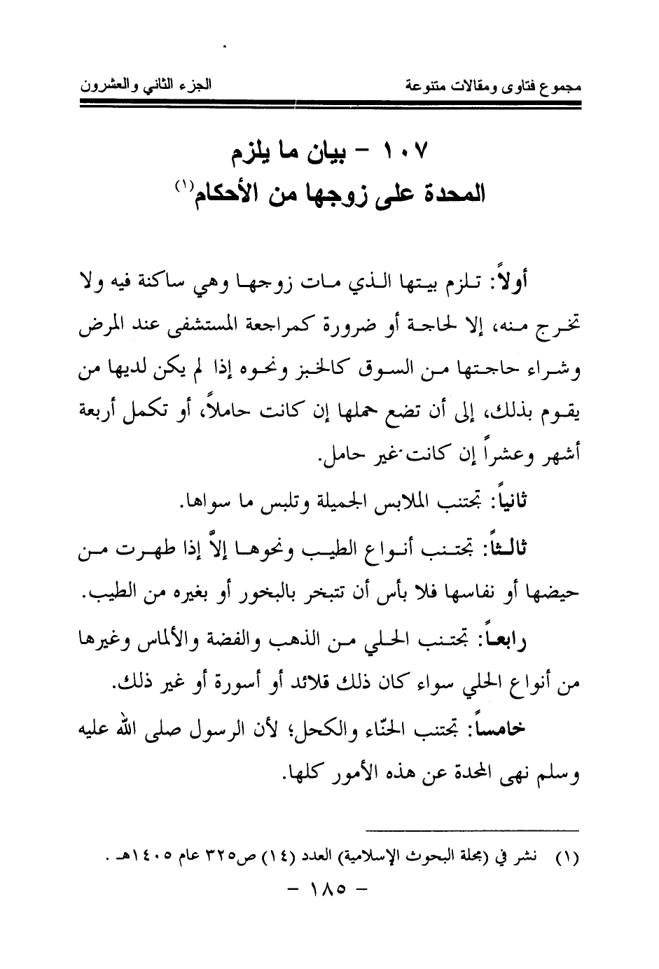 (¬1) نشر في (مجلة البحوث الإسلامية) العدد (14) ص 325 عام 1405 هـ.