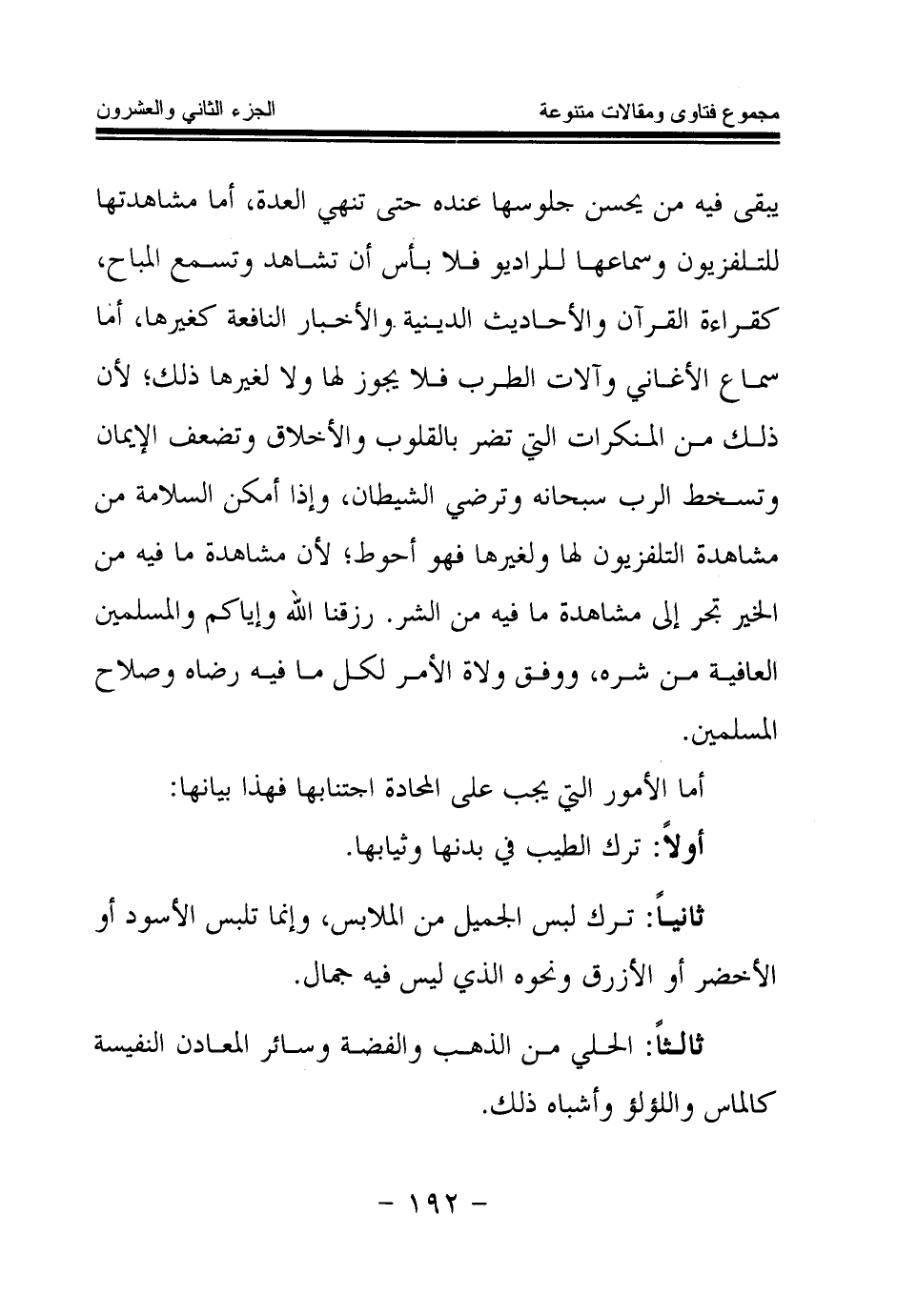 ثانيا: ترك لبس الجميل من الملابس، وإنما تلبس الأسود أو الأخضر أو الأزرق ونحوه الذي ليس فيه جمال.