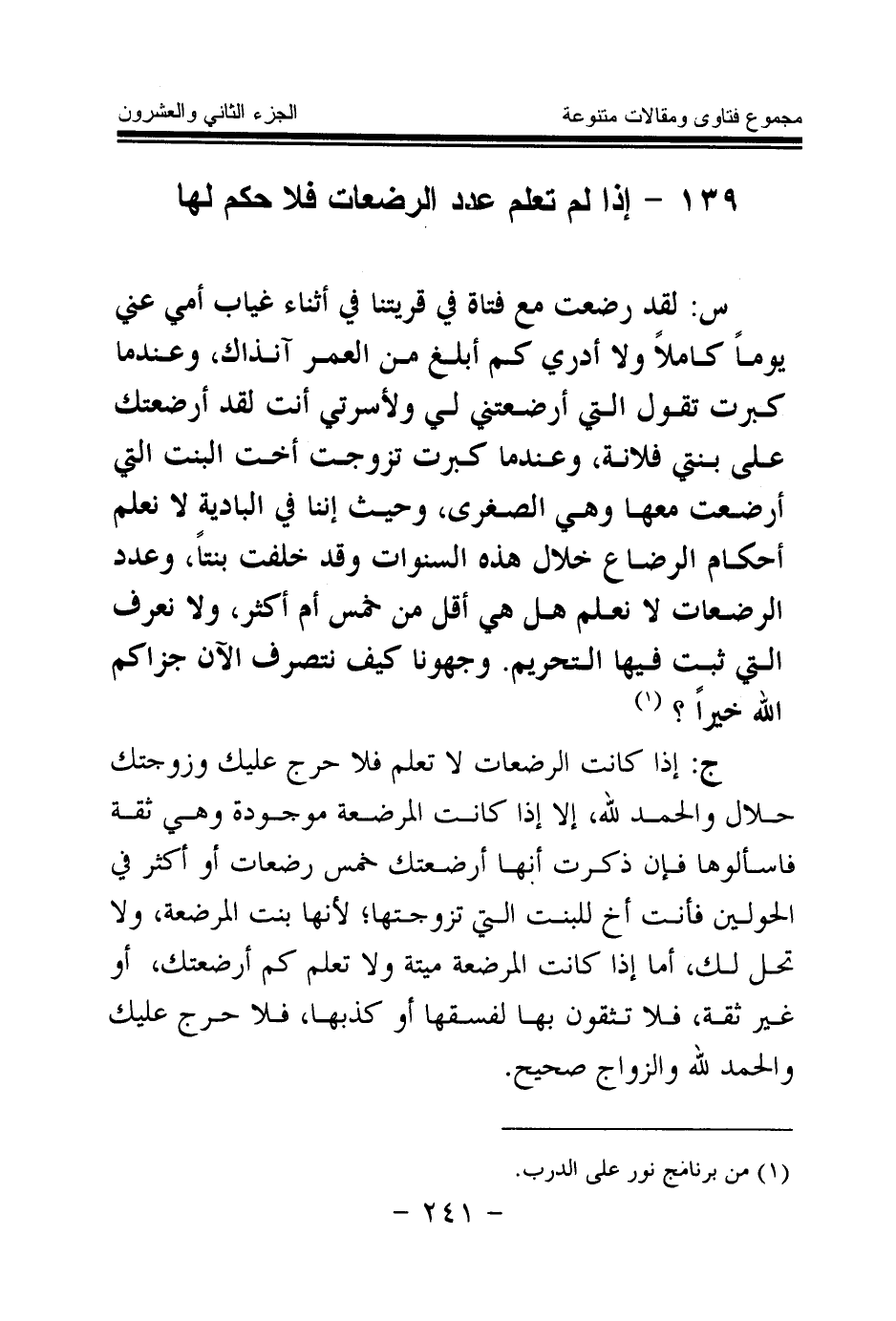 139 - إذا لم تعلم عدد الرضعات فلا حكم لها