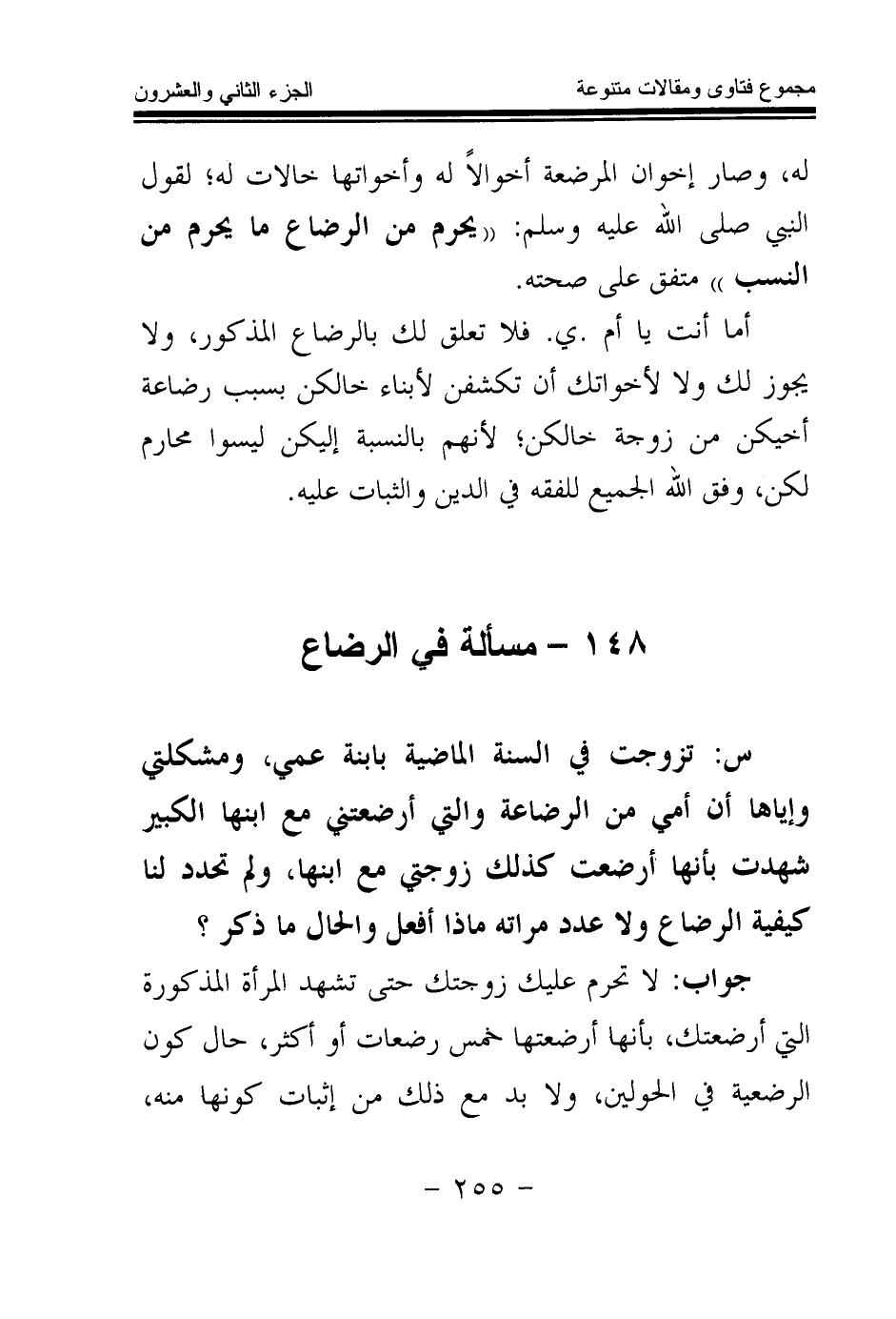 148 - مسألة في الرضاع