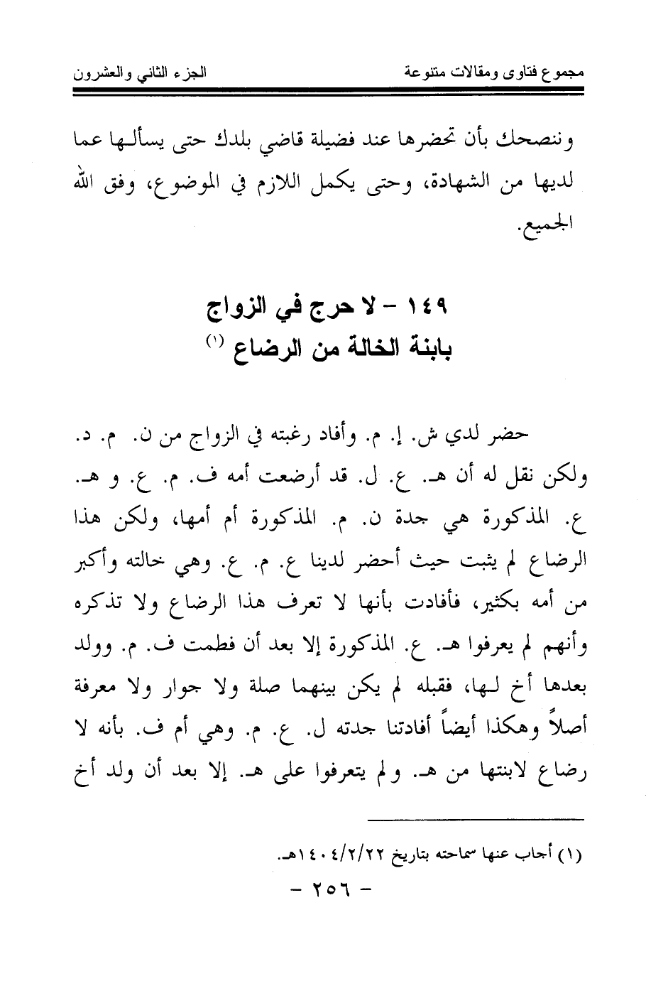 149 - لا حرج في الزواج بابنة الخالة من الرضاع (¬1) .