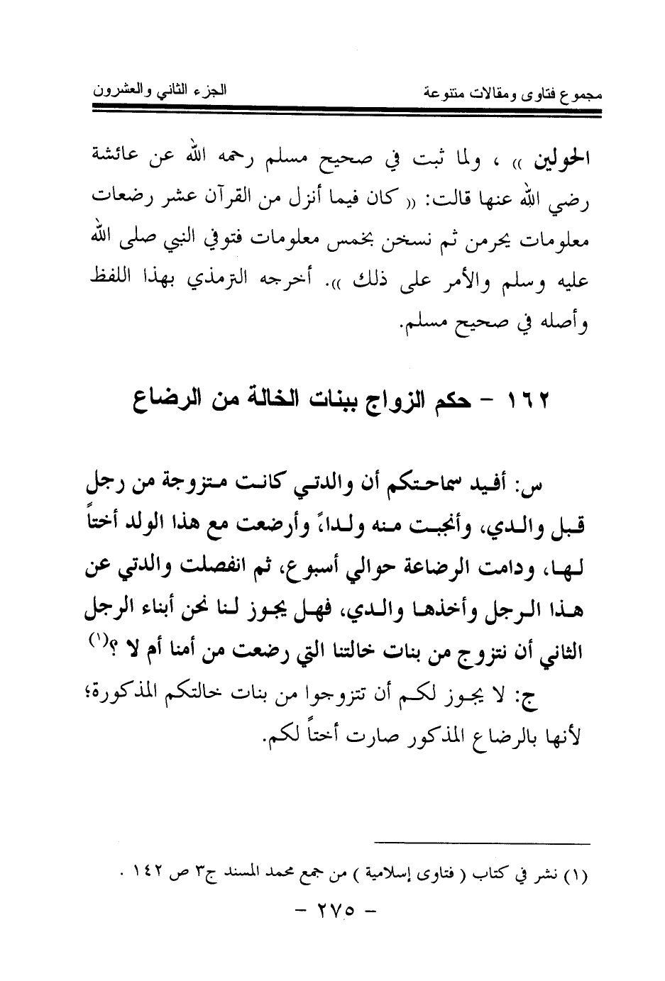 162 - حكم الزواج ببنات الخالة من الرضاع