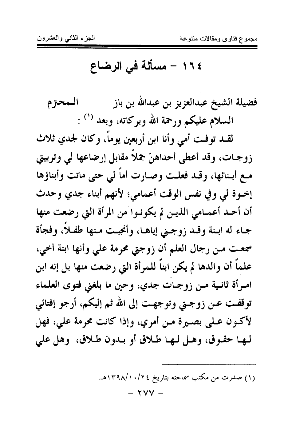 (¬1) صدرت من مكتب سماحته بتاريخ 24 \ 10 \ 1398هـ.
