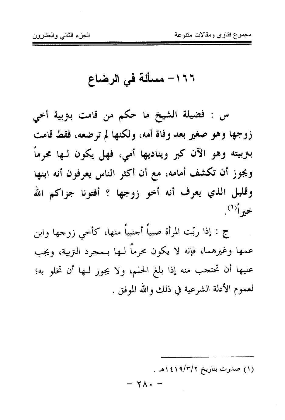 166 - مسألة في الرضاع