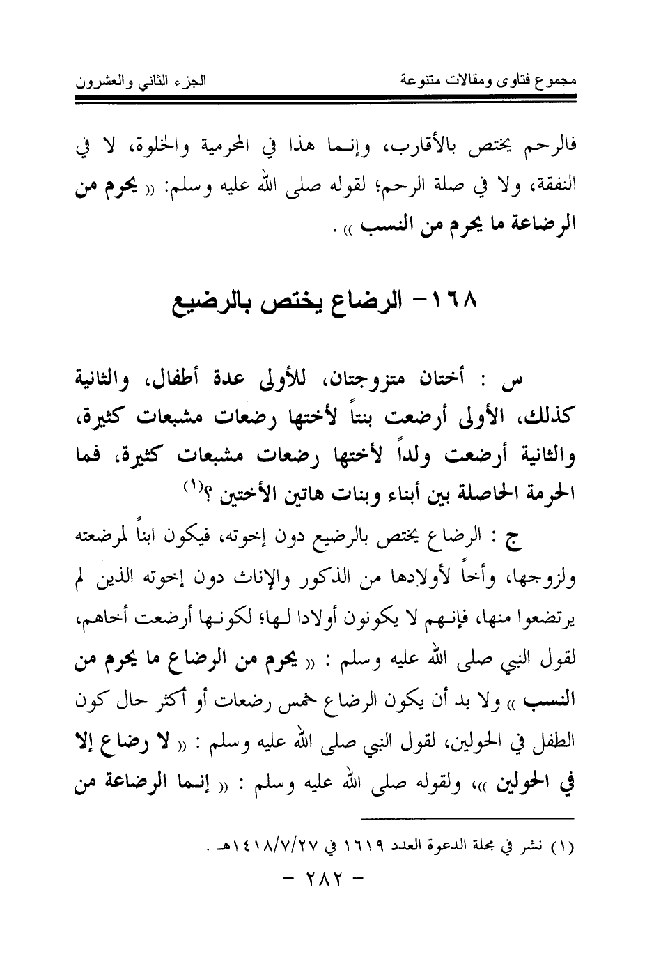 168 - الرضاع يختص بالرضيع